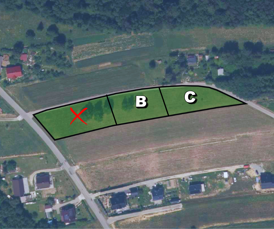Działka B: 1180 m² 94 400 zł